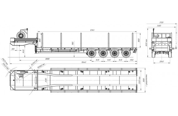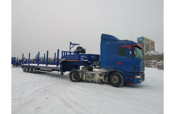 50000 кг, шины 385/65R22,5 или 445/65R22,5/ 6+1, присавные алюминиевые трапы, платформа 12200 мм, ССУ 1450 мм, пневматическая подвеска, раздвижные коники 1500 мм, съемные борта или без них, в ГАБАРИТЕ по ДЛИНЕ АВТОПОЕЗДА с КАМАЗ 6x6
