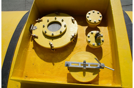 Стандартное оснащение: Заливная горловина, дыхательный клапан, сливной кран в защитном коробе, волногасители, люк-лаз, лестница, площадка для обслуживания, складные перила, уровнемер |
