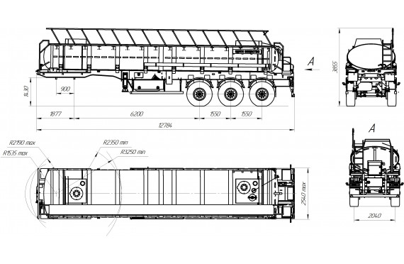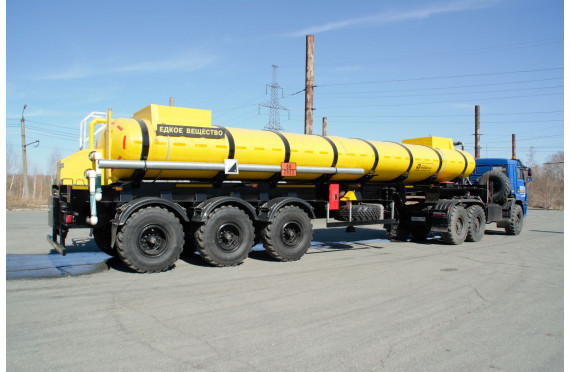 Материал: химстойкое стекловолокно, емкость: 22 куб.м., сечение: эллипсное, конструкция: однослойная или трехслойная (волокно, утеплитель, волокно), крепление: при помощи стяжных лент, перевозимые жидкости: кислоты/едкие вещества/нефть/техвода/щелочные и солевые растворы, автошины 425/85R21